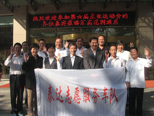 10月11日是恒泰出租汽车有限公司“泰达志愿服务车队”为在津举办的第六届东亚运动会提供用车服务的第三天志愿工作日。当日上午,泰达股份主要领导公司党委书记孙国强同志到泰达志愿服务车队服务场地汇高酒店看望慰问车队队员。感谢他们多年来对出租公司工作的支持,特别是在国庆黄金周期间,放弃正常运营参加社会公益活动,减少运营收入,为东亚运动会提供用车服务,在中外宾客面前展示天津“的哥的姐”的形象,在行业搭建的平台上宣传“泰达志愿服务车队”的品牌,树立了车队的公众形象,表示感谢,并预祝大家圆满地完成市政府和客运行业交给的任务。