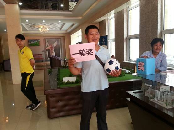 正值巴西世界杯的热播,泰达美源对案场也进行了世界杯主题元素的装扮:彩旗、大力神杯模型以及泰达球员的全体亲笔签名足球,在我们售楼处都能看到。6月14日,泰达美源在售楼处举办了世界杯主题的抽奖活动。